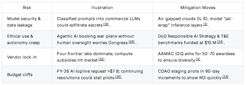 Budget muscle: Congress added a $15 B AI/ML IDIQ (AAMAC) to the FY-25 authorization4.